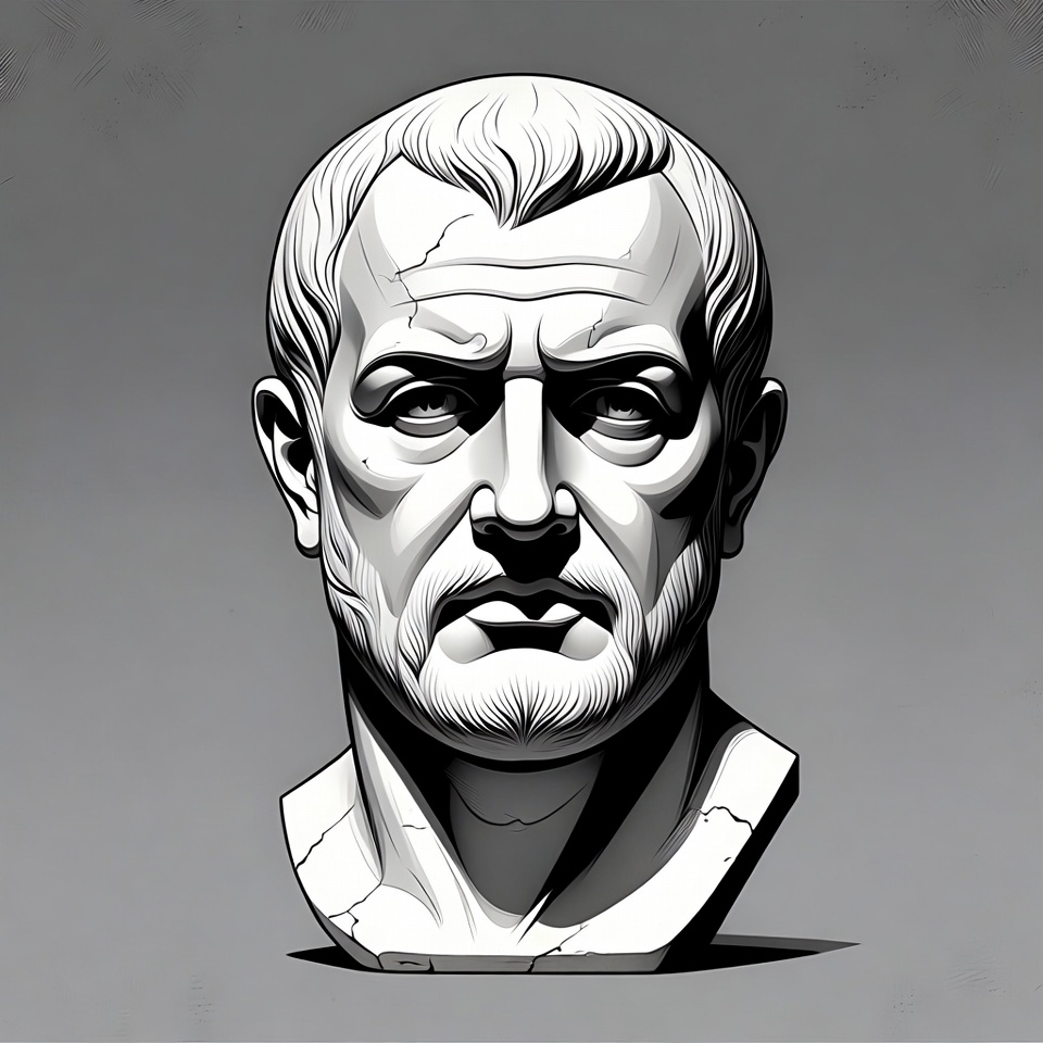 Roman emperor, White, ancient Rome, ancient bust, beard, bust portrait, classical art, cracked stone, detailed illustration, digital drawing, facial hair, grayscale, historical figure, illustration, intense eyes, isolated background, male, marble sculpture, philosopher bust, portrait, shaded drawing, short hair, stoic expression, stone texture, warrior face, white hair, Roman man