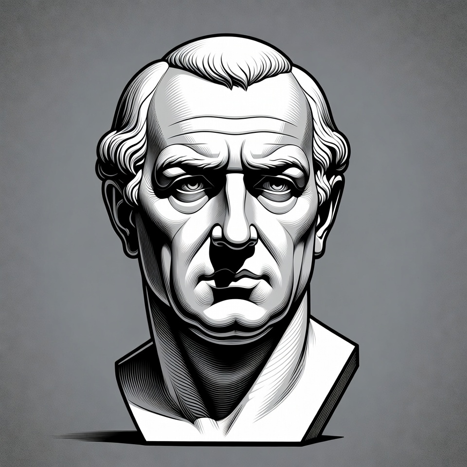 artistic drawing, black and white, bust, classical portrait, engraving style, face, furrowed brows, grayscale, headshot, illustration, intense eyes, isolated background, line art, man, portrait, senior, stern expression, vector art, white hair, elderly man