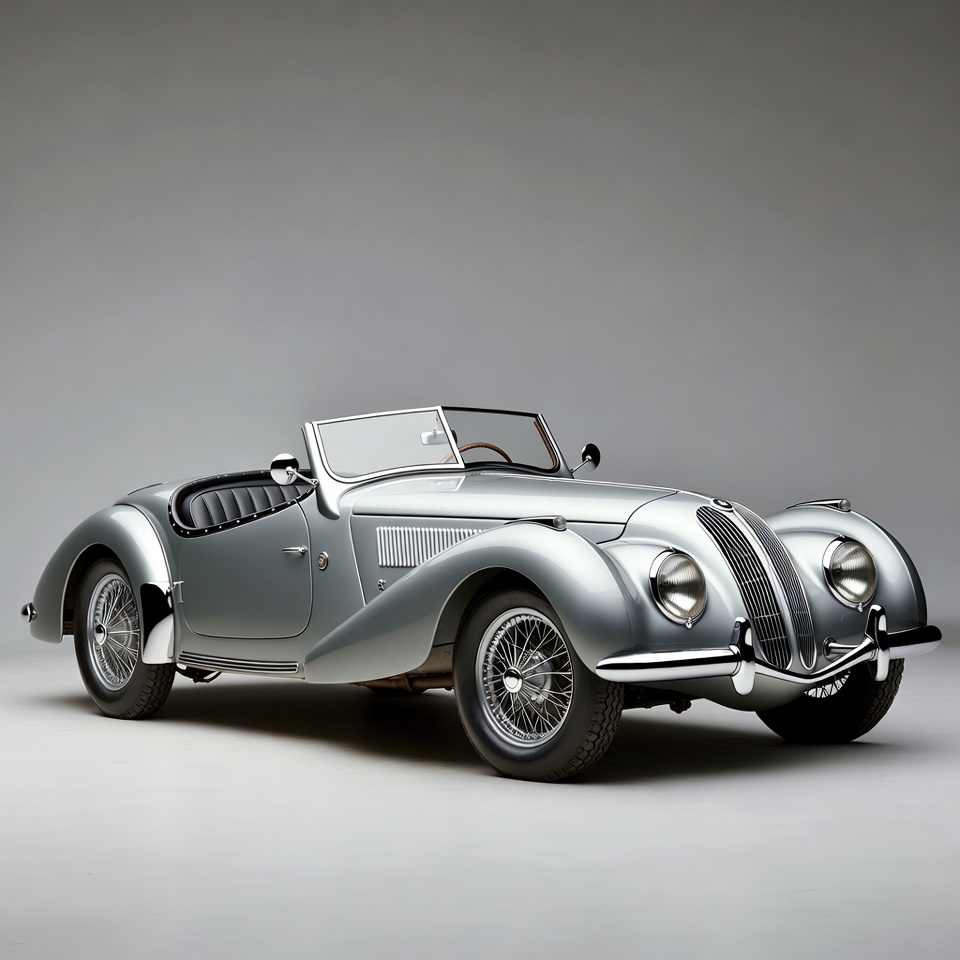1930s car, black leather, chrome trim, classic car, convertible, headlights, isolated background, kidney grille, luxury car, roadster, silver car, sports car, vintage automobile, wire wheels, BMW 328