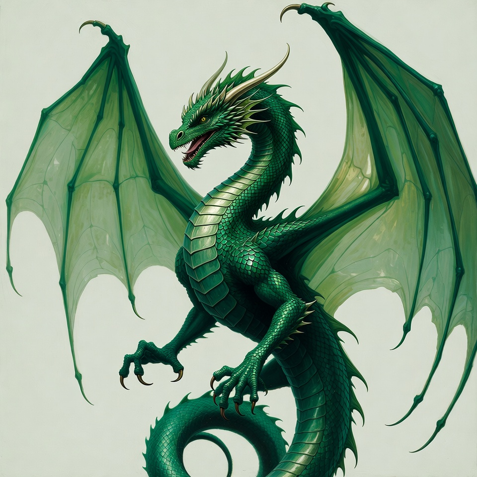 claws, digital art, fantasy creature, fierce dragon, green dragon, horns, illustration, isolated background, mythical beast, roaring, scales, sharp teeth, spread wings, standing, wings, dragon