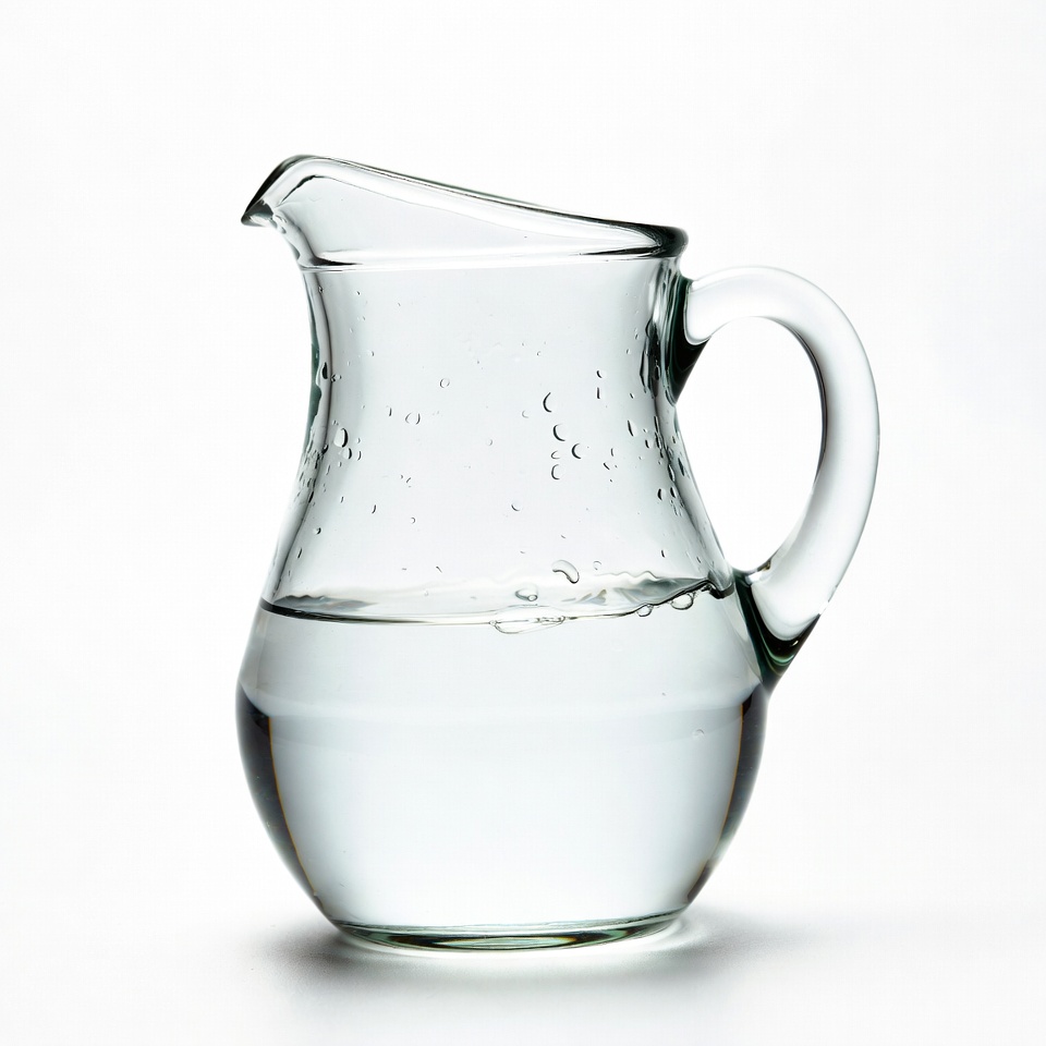 beverage container, bubbles, clear glass, drinking water, handle, isolated, jug, kitchenware, pitcher, spout, transparent, water, water pitcher, white background, glass pitcher