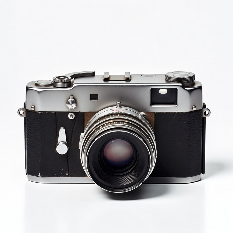 35mm camera, Leica style, SLR camera, analog camera, aperture lens, camera body, camera closeup, camera lens, chrome camera, classic camera, film camera, focus ring, isolated background, leather camera, manual camera, old camera, photo gear, photography, photography equipment, rangefinder, retro camera, shutter button, silver camera, viewfinder, vintage camera