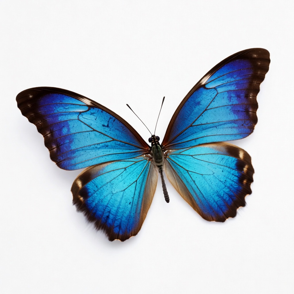 Morpho butterfly, beautiful butterfly, blue morpho, brown edges, butterfly wings, insect, isolated background, macro photography, nature, spread wings, tropical butterfly, vibrant blue, wildlife, wing patterns, blue butterfly