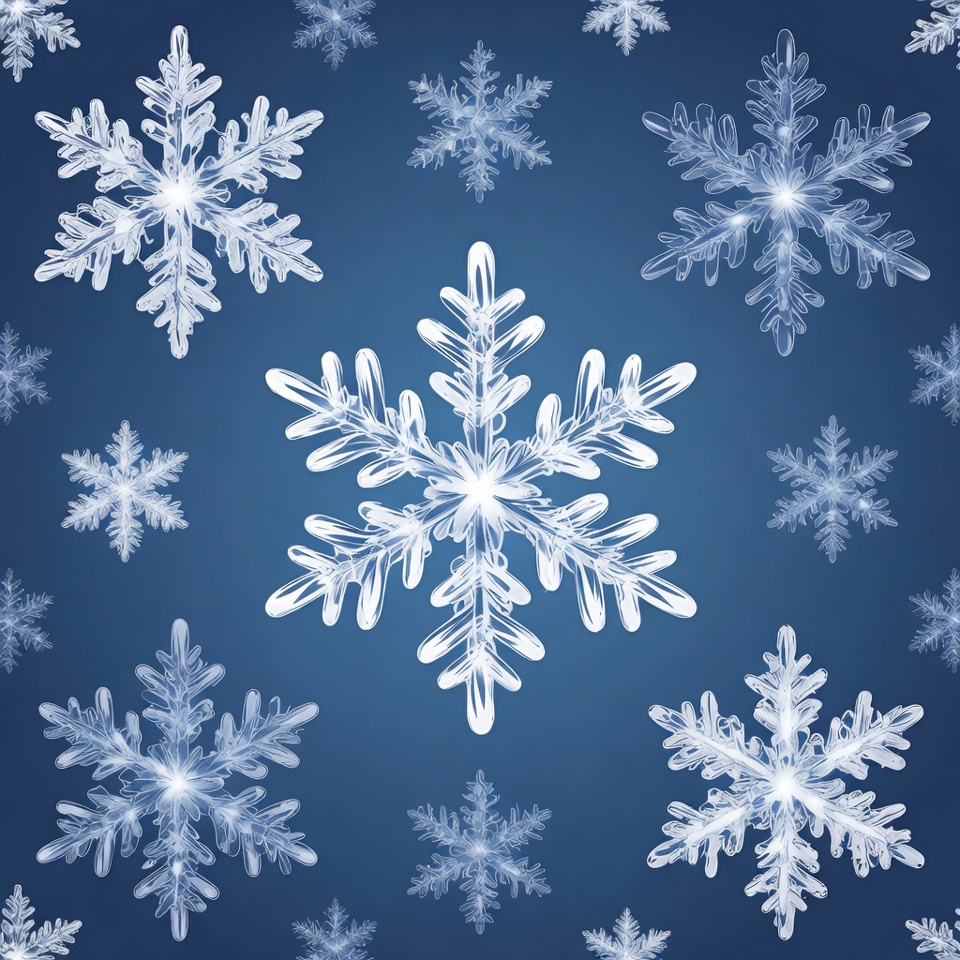 A seamless pattern of white snowflakes scattered across a deep blue background. The snowflakes feature intricate, symmetrical designs with glowing edges. They are evenly distributed for a winter-themed wallpaper effect.