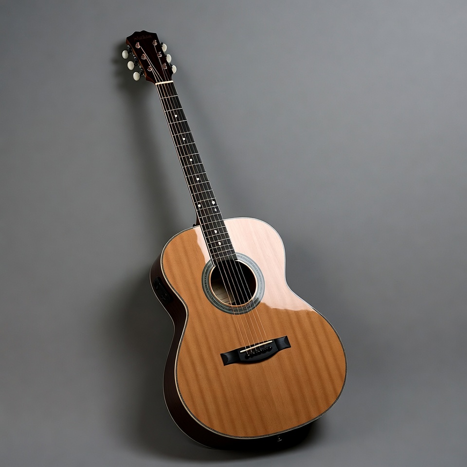 Acoustic Guitar on Gray Background