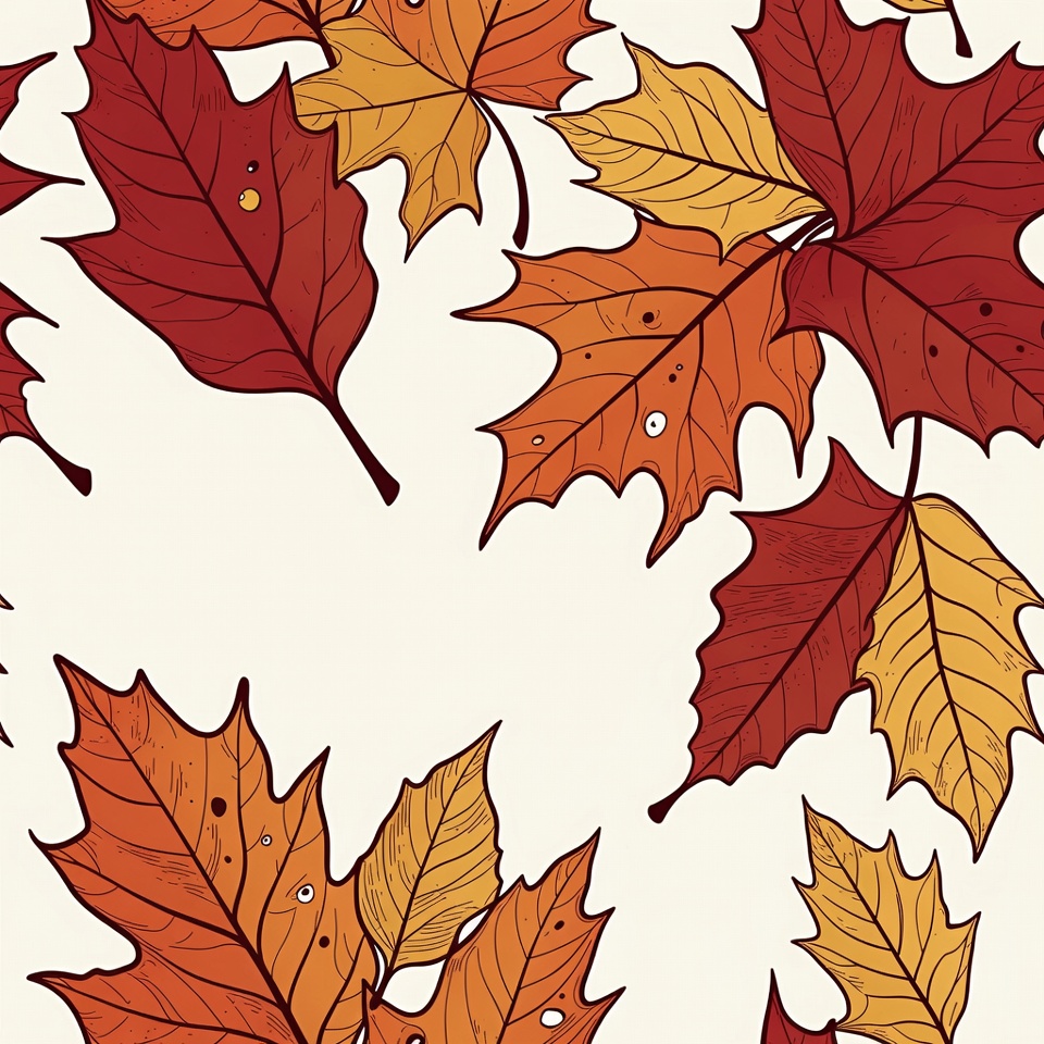 autumn graphic, clipart, colorful leaves, fall leaves, falling leaves, foliage, hand drawn leaves, leaf illustration, leaf pattern, line drawing, maple leaves, nature graphic, orange foliage, orange leaves, red leaves, seasonal, vector art, white background, yellow leaves, autumn leaves
