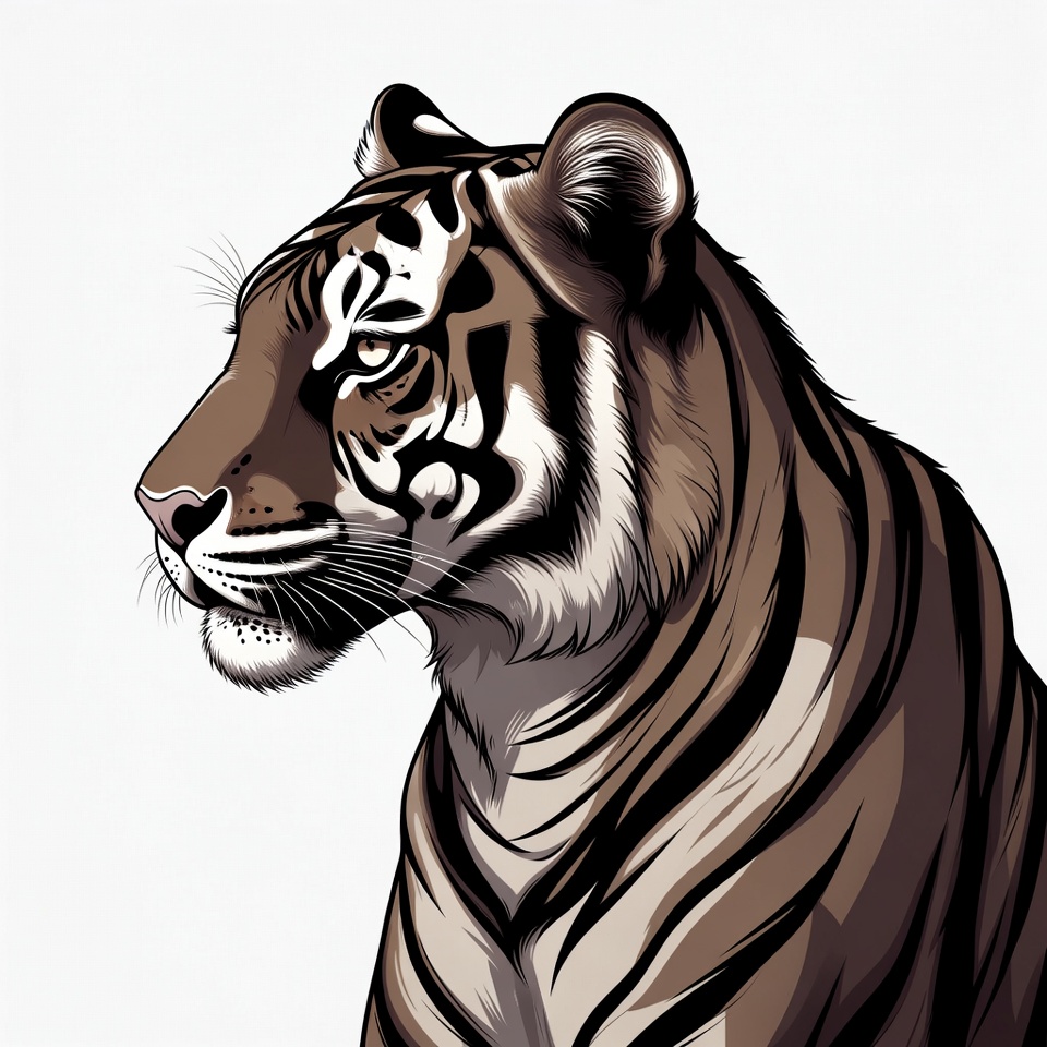 animal illustration, animal portrait, black stripes, brown tiger, clipart, digital illustration, fierce tiger, isolated background, profile view, side view, striped tiger, tiger eyes, tiger face, tiger head, tiger illustration, tiger stripes, tiger whiskers, vector tiger, wildlife art, tiger