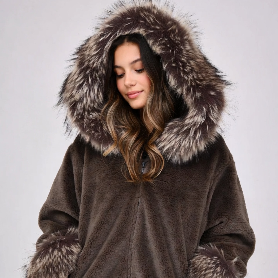 Woman in fur hooded jacket