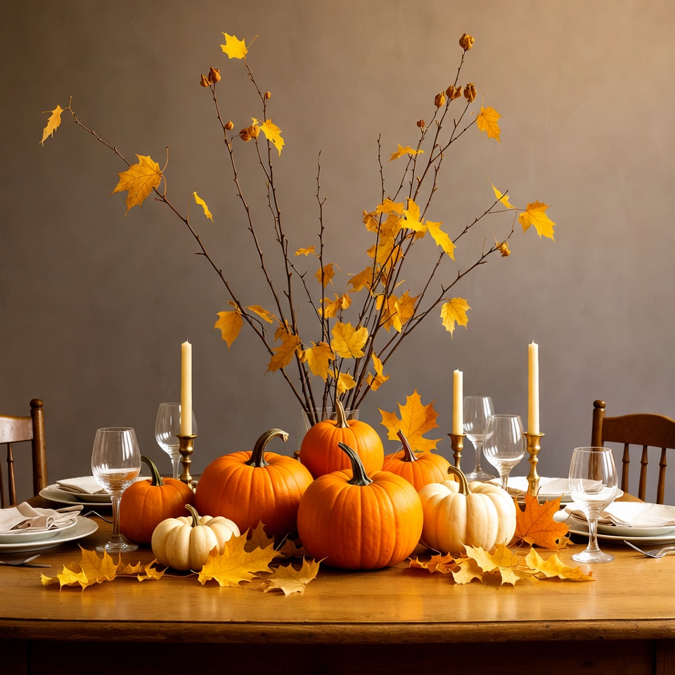 Autumn Pumpkin Centerpiece on Table