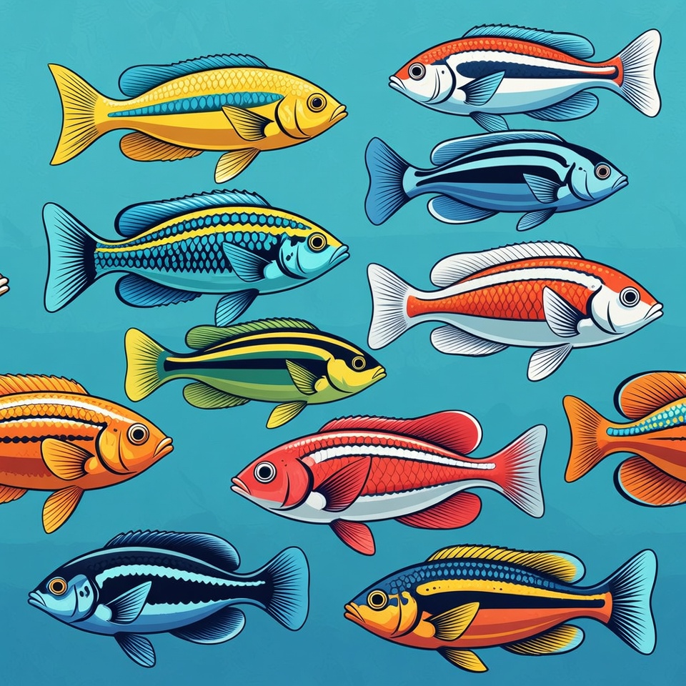 aquarium fish, black fish, blue fish, clipart, colorful fish, detailed fins, fish illustration, fish pattern, graphic design, isolated background, marine life, ocean fish, orange fish, red fish, striped fish, swimming fish, vector fish, vibrant colors, yellow fish, tropical fish