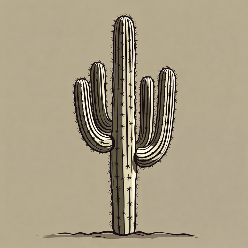 arms, beige background, clipart, desert, desert plant, drawing, graphic, illustration, isolated background, line art, nature, prickly pear, saguaro cactus, simple background, spines, succulent, tall cactus, vector art, cactus