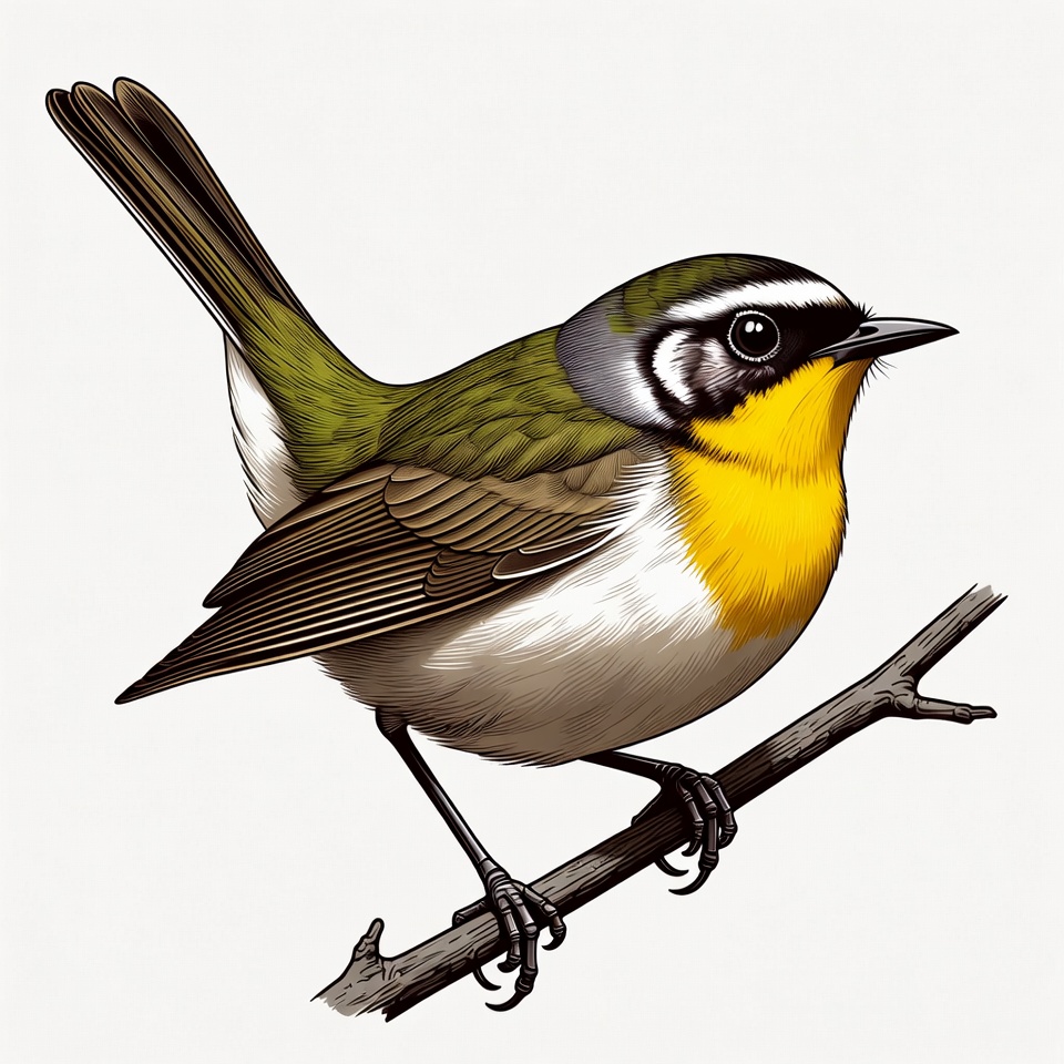 avian, bird, black cap, branch, chickadee, clipart, detailed drawing, feathers, gray wings, illustration, isolated background, nature, perching, songbird, white cheeks, wildlife, yellow throat, black-capped chickadee