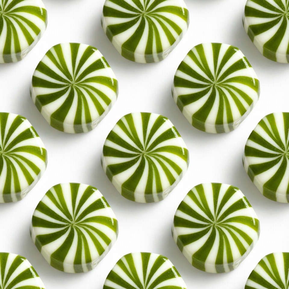 candy arrangement, candy background, candy closeup, candy design, candy grid, candy pattern, candy texture, colorful candy, confectionery, food pattern, glossy candy, green mints, green white candy, hard candy, mint candy, mint swirl, peppermint candy, repeating candies, round candies, seamless pattern, spiral candy, striped candy, sweet candy, swirl candies, swirl pattern, white background, white green candy, white swirl, green candies