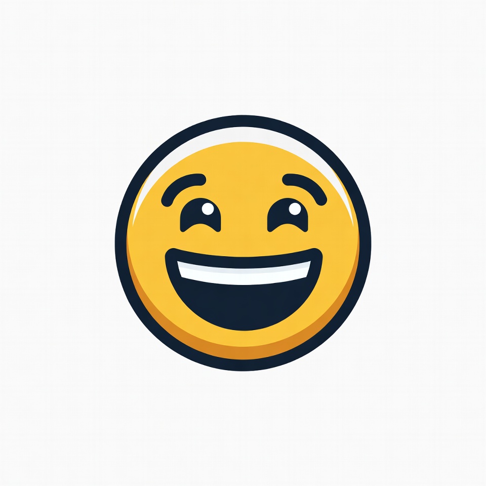 cartoon face, clipart, digital icon, emoji, emoticon, happy face, illustration, isolated background, joyful expression, smiley face, smiling eyes, squinted eyes, wide smile, yellow emoji, grinning face
