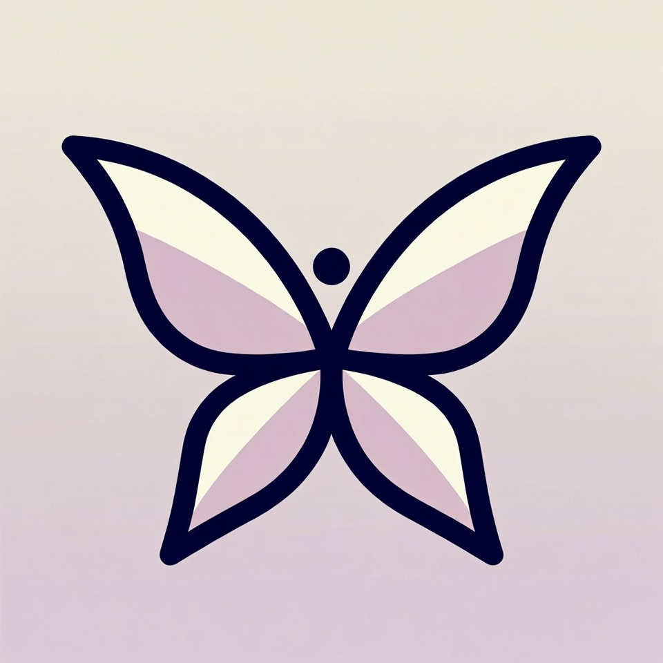 A simple line art illustration of a butterfly with purple and white wings. The butterfly features black outlines and a small black dot on its body. It is centered on a light purple gradient background.