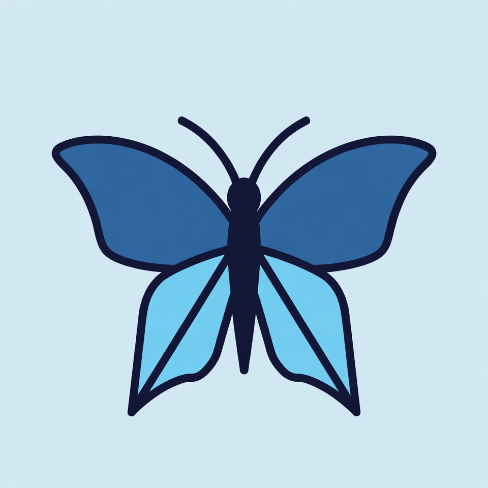 animal, blue butterfly, blue wings, clipart, flat design, graphic, illustration, insect, isolated background, line art, simple butterfly, vector, butterfly