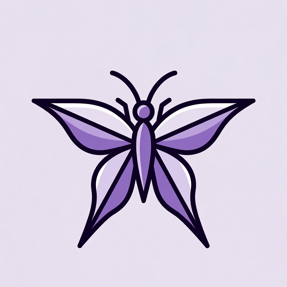 A simple purple butterfly illustration with white accents on its wings. It features black outlines and a symmetrical design. The butterfly is centered on a light purple background.