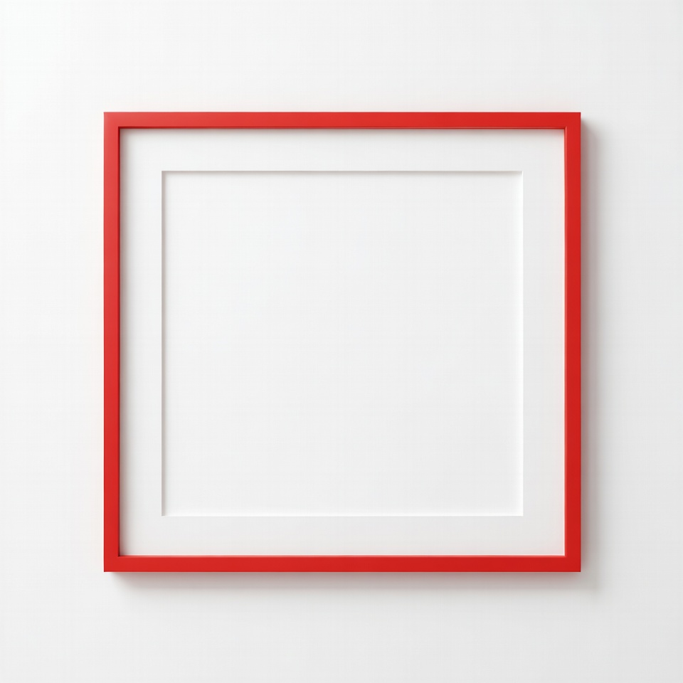 art frame, blank frame, empty frame, frame mockup, hanging frame, isolated background, photo frame, picture frame, red border, square frame, wall art, white background, white mat, white wall, red frame