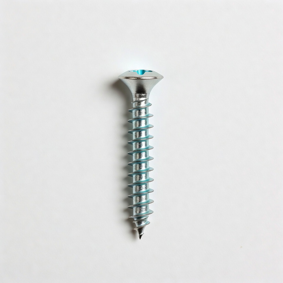 DIY, Phillips screw, closeup, construction, countersunk head, fastener, hardware, isolated background, metal screw, screw head, screw threads, sharp point, shiny metal, silver screw, threaded screw, tool, white background, wood screw, screw
