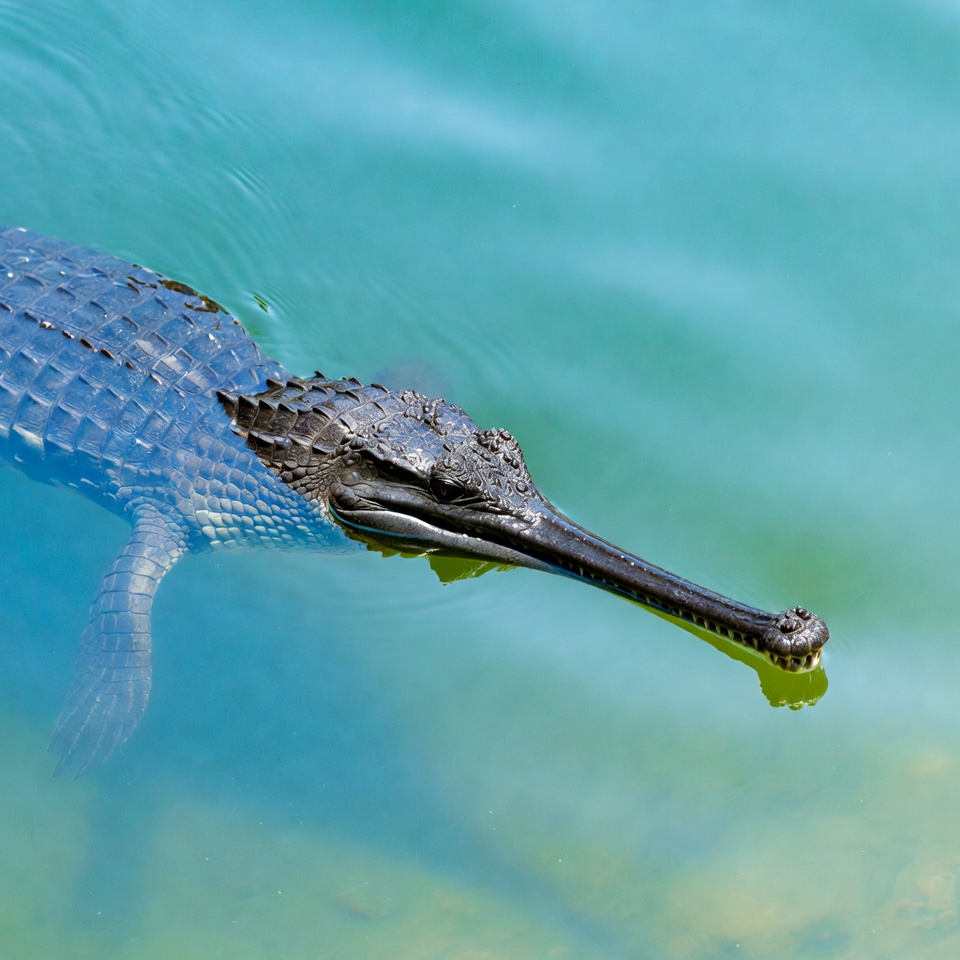 animal, aquatic, blue water, crocodile, gharial swimming, long snout, nature, predator, reptile, river, scales, snout, swimming, water, wildlife, gharial