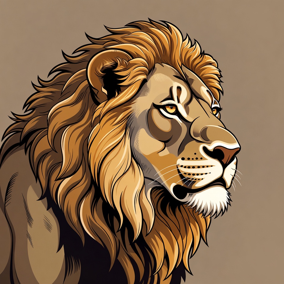 animal, clipart, digital illustration, fierce lion, illustration, isolated background, king of jungle, lion head, majestic lion, mane, orange mane, profile view, vector art, wildlife, yellow eyes, lion