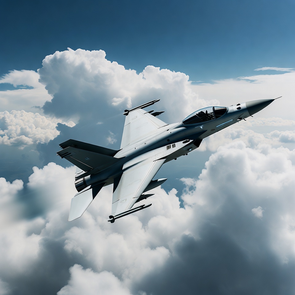 F-16 Fighter Jet Flying Through Clouds