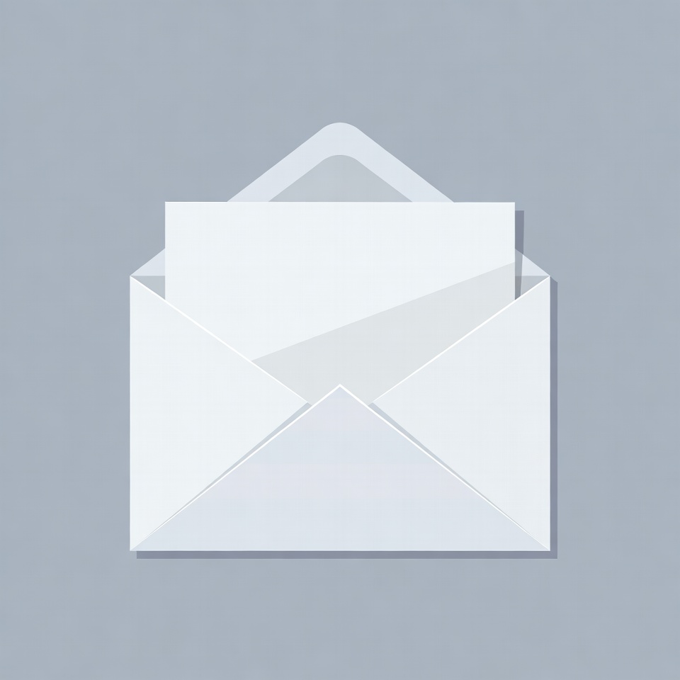 A simple white envelope is depicted open on a gray background. A white sheet of paper protrudes from inside the envelope. The design is flat and minimalist.
