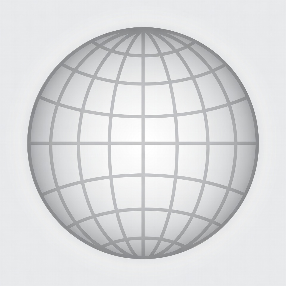 3D globe, Earth, clipart, geography, global, gray globe, grid lines, illustration, isolated background, latitude, longitude, map, planet, sphere, vector, white background, world, globe