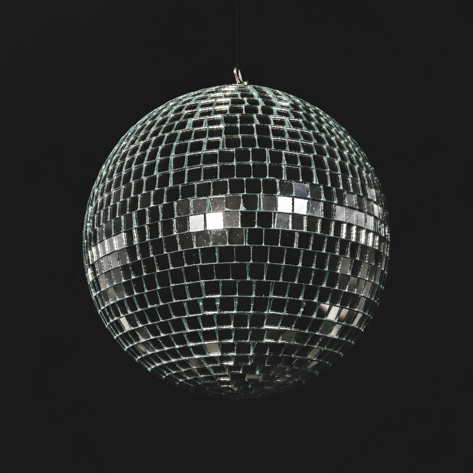 Disco Ball Hanging on Black Background