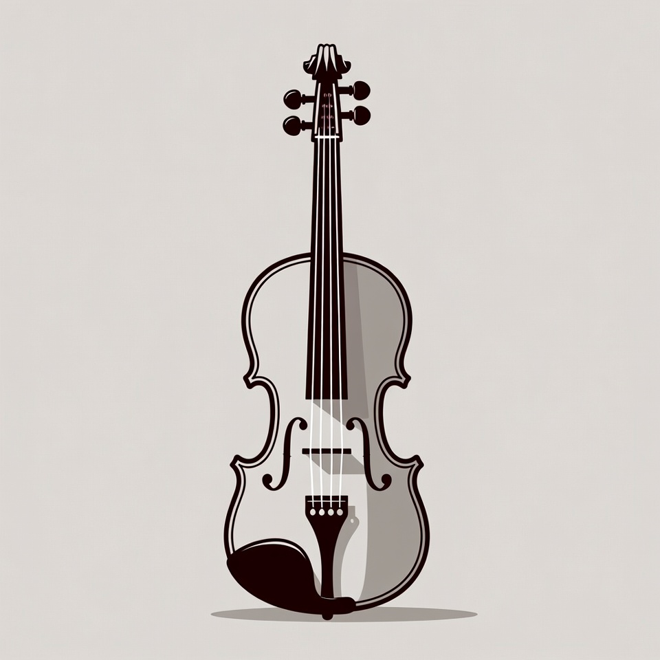 bowless, classical music, clipart, fiddle, gray background, illustration, isolated background, line art, minimalist drawing, musical instrument, shadow, strings, upright violin, vector, violin