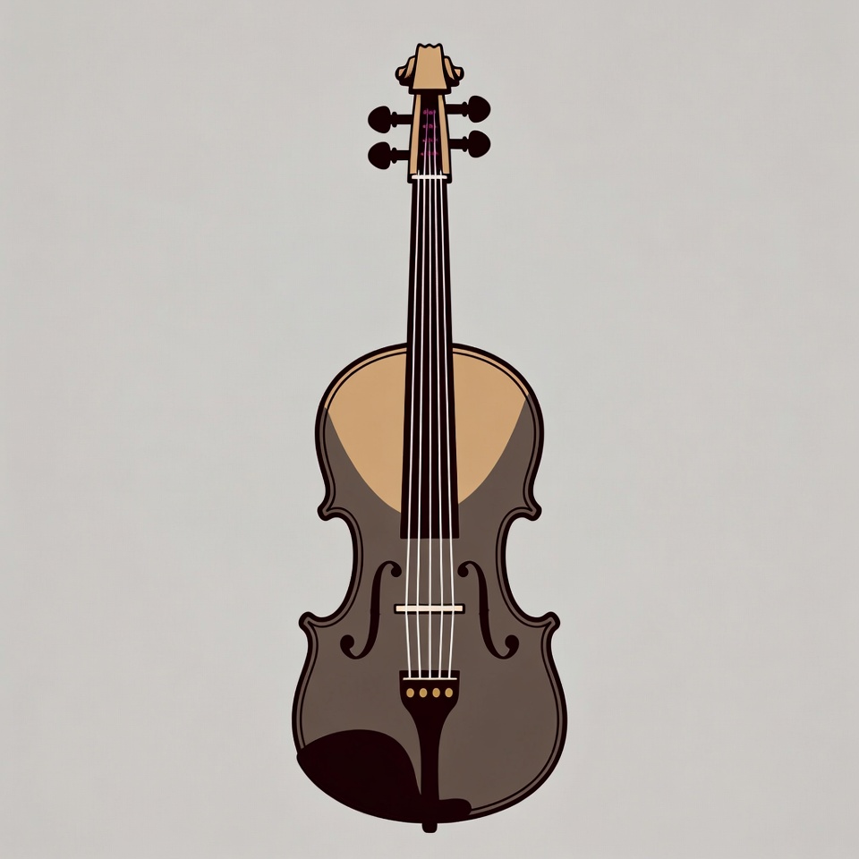 acoustic instrument, bowless, classical music, clipart, f-holes, fiddle, gray background, illustration, isolated background, musical instrument, musician tool, neck, orchestra, scroll, shaded drawing, strings, vector art, wood grain, violin