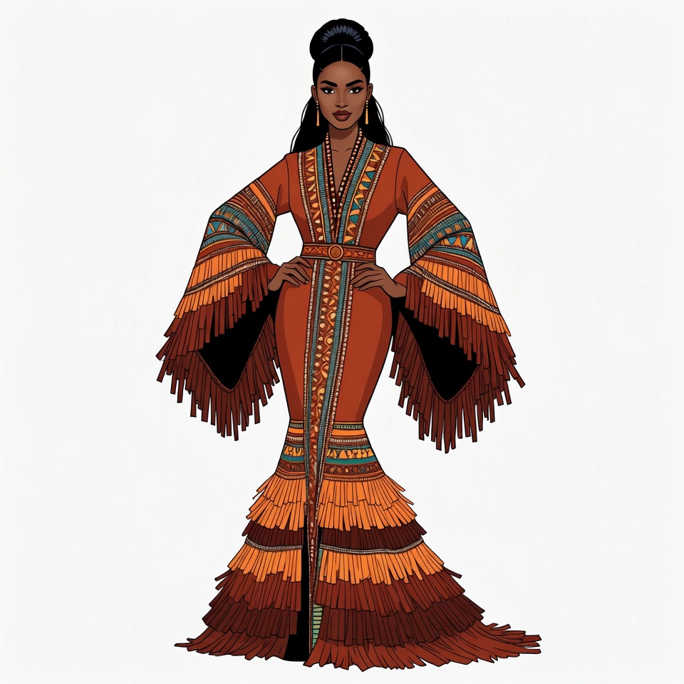 African woman in fringed gown