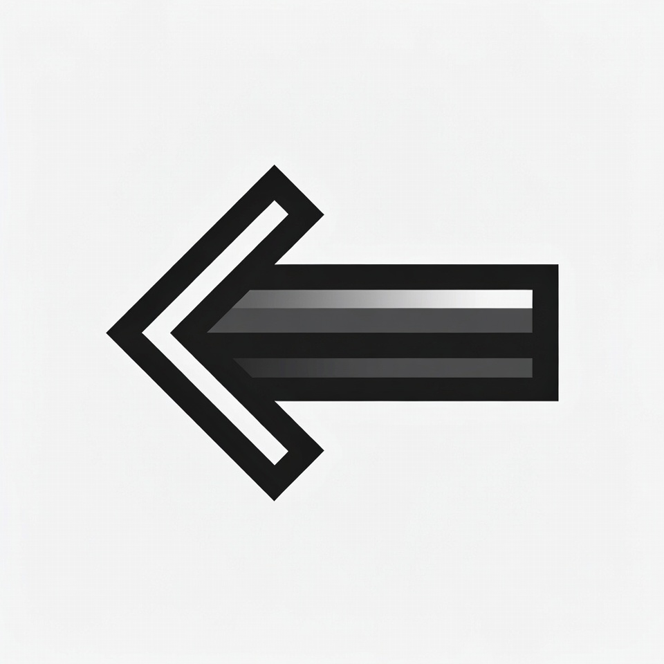 A simple black left-pointing arrow icon with a thick outline and subtle gradient shading on a white background. The arrow features bold lines and a clean, modern design suitable for UI elements.