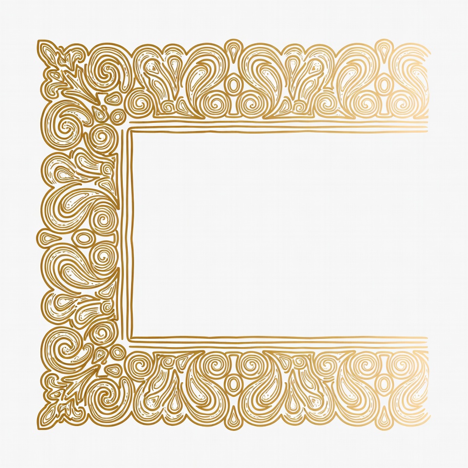 artistic frame, baroque frame, clipart, curly patterns, decorative frame, elegant border, empty frame, fancy frame, filigree border, floral border, gold ornament, illustration, isolated background, ornate border, paisley design, rectangular frame, swirling motifs, vector border, vintage frame, gold frame