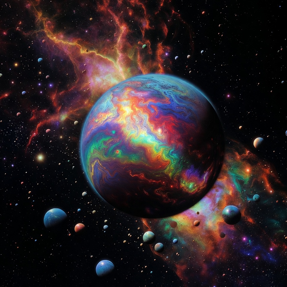 Colorful Iridescent Planet in Nebula
