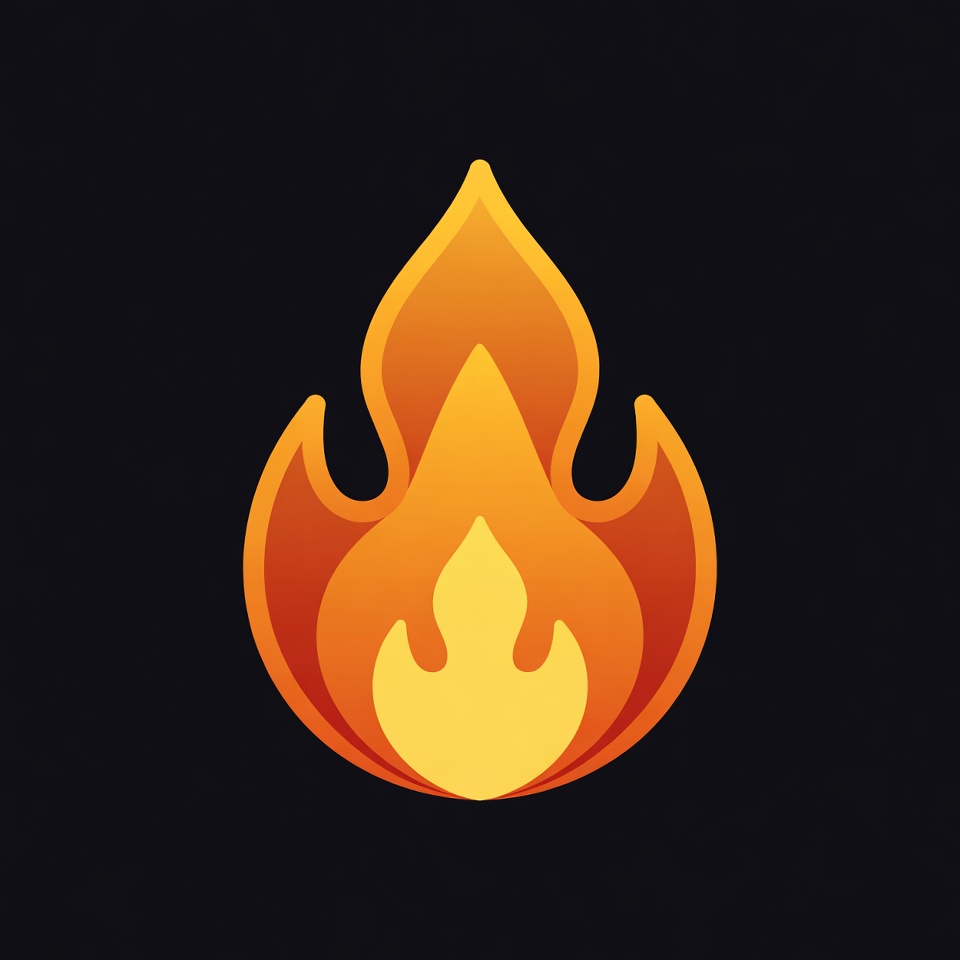 A vibrant orange and yellow flame icon rises sharply against a solid black background. The flame features smooth, curved edges with layered gradients for a dynamic, fiery effect. It is a simple vector-style graphic isolated on the dark backdrop.