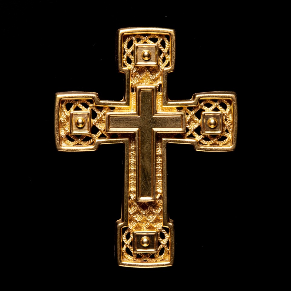Christian cross, Christianity, black background, cross, crucifix, decoration, detailed cross, faith symbol, filigree cross, gold jewelry, isolated, jewelry, metallic, necklace pendant, ornate cross, religious symbol, shiny gold, square frame, studs, gold cross