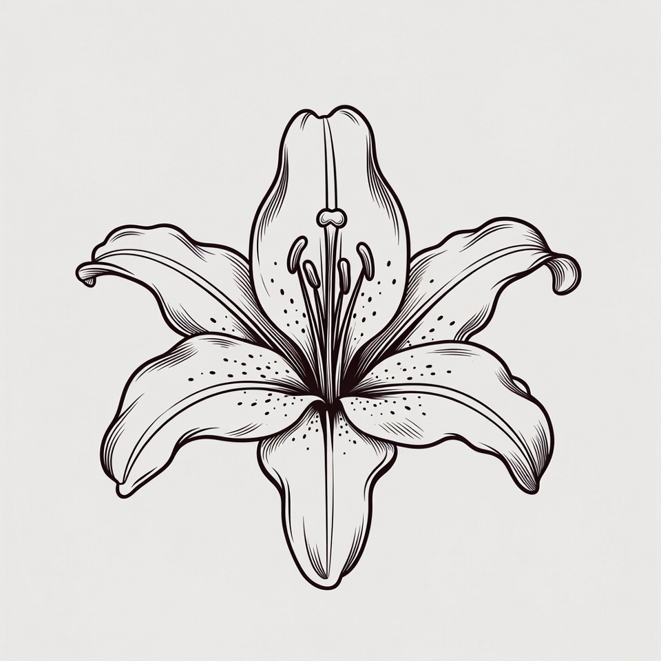 black ink, botanical, clipart, elegant lily, floral, flower, hand drawn, illustration, ink drawing, isolated, lily, line art, outline, petals, pistil, sketch, stamens, vector flower, white background, lily flower