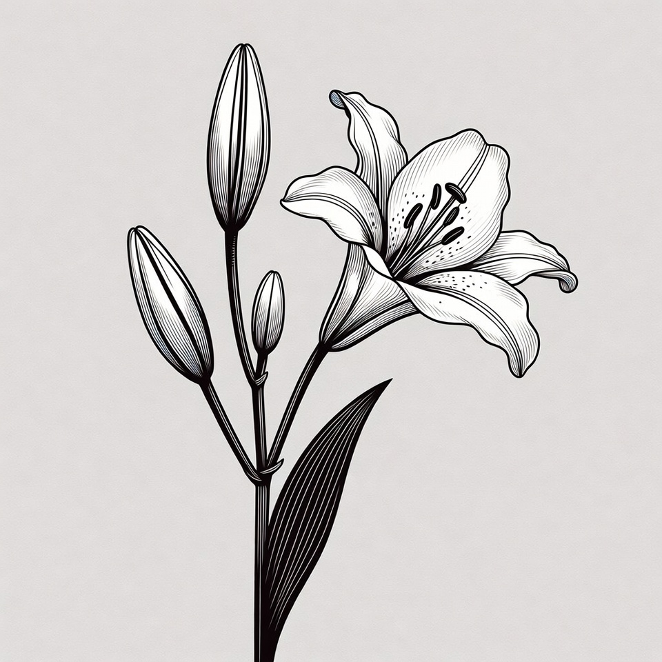 Line Art Lily Flower with Buds