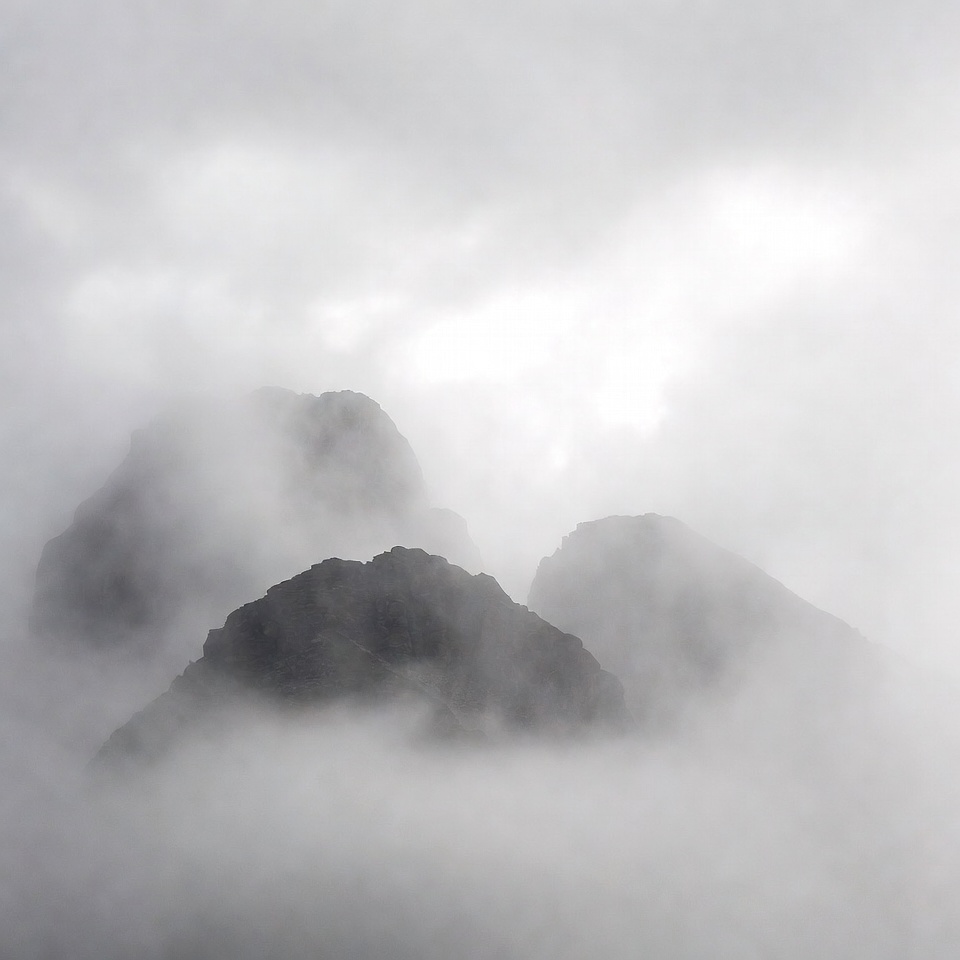 atmospheric, clouds, cloudy sky, fog, fog shrouded, grey fog, landscape, mist, misty mountains, mountain range, nature, overcast, peaks, rocky peaks, rocky summits, mountains