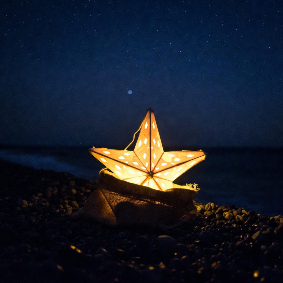 Glowing Star Lantern on Beach
