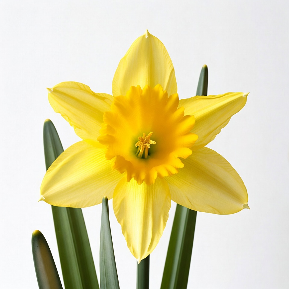 Yellow Daffodil Flower with Green Leaves