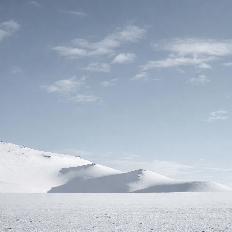 arid, blue sky, clouds, curves, desert, dune landscape, dune shadows, empty landscape, hills, horizon, landscape, nature, sand hills, scenery, shadows, sky, smooth dunes, snowy dunes, vast, white sand, winter desert, sand dunes