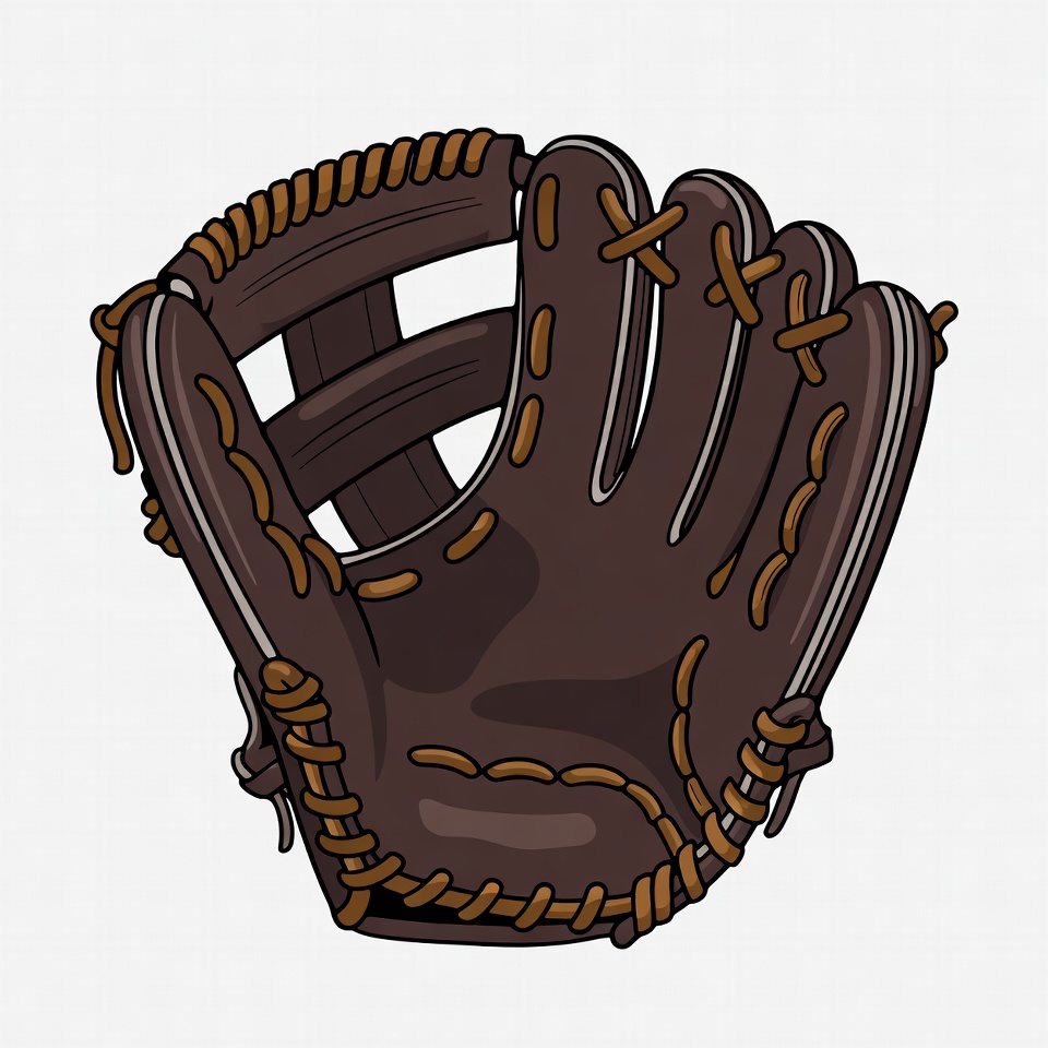 baseball, brown glove, catchers mitt, clipart, glove, illustration, isolated background, laces, leather glove, sports equipment, stitches, vector art, webbing, baseball glove