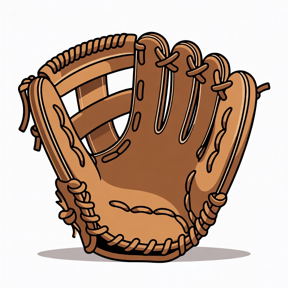 baseball gear, baseball mitt, brown glove, catchers mitt, clipart, illustration, isolated background, laces, leather glove, open glove, sports equipment, stitching, vector art, webbing, baseball glove