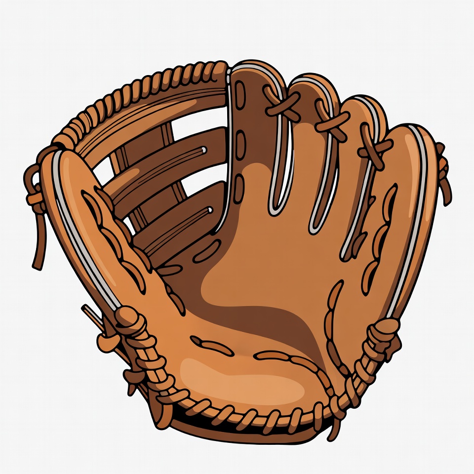 baseball gear, baseball mitt, brown glove, catcher's mitt, clipart, illustration, isolated background, laces, leather glove, open glove, padded fingers, sports equipment, stitching, webbing, baseball glove