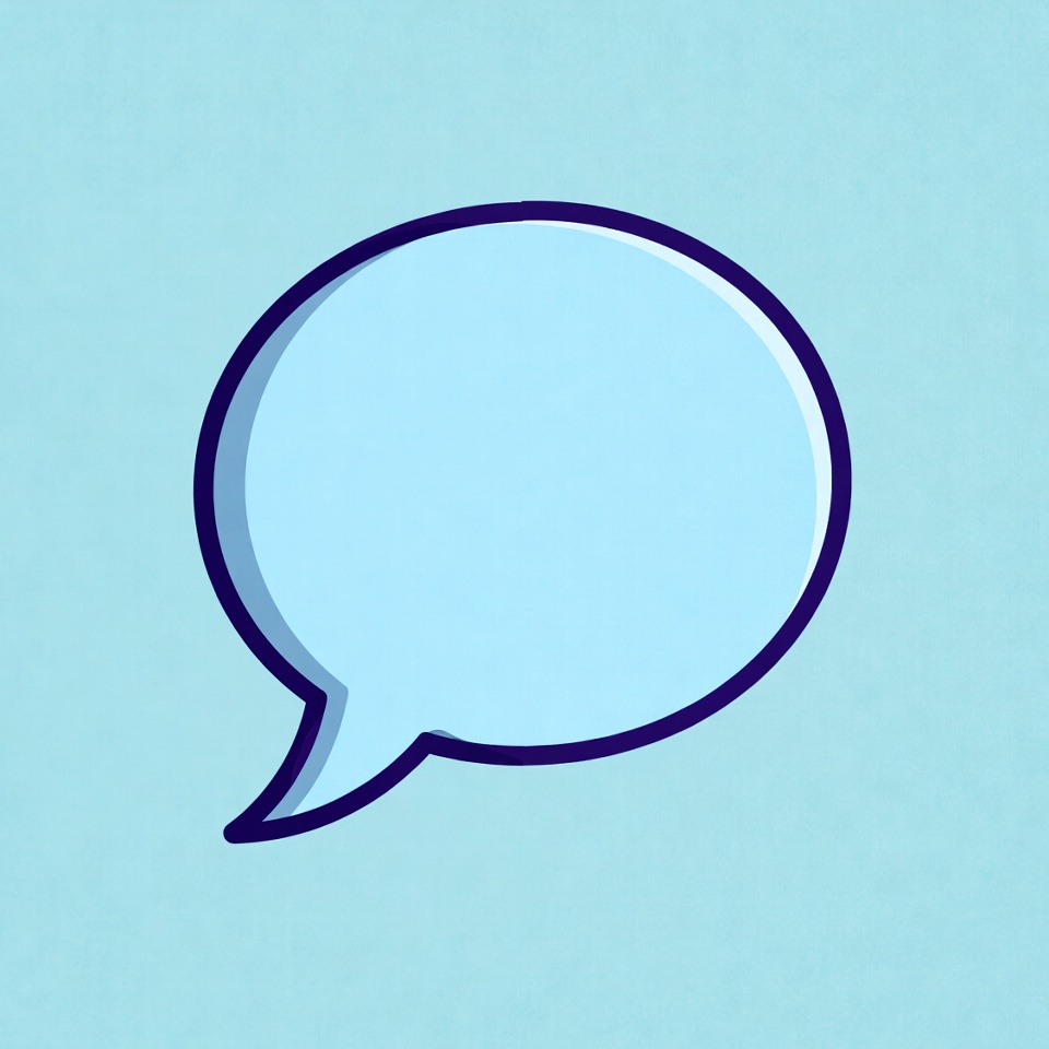 A light blue speech bubble with a curved tail is isolated on a matching blue background. The bubble features a thick dark blue outline and subtle shading for a 3D effect. It is a simple vector clipart design.