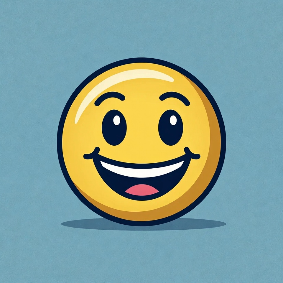 big eyes, blue background, cartoon emoji, clipart, emoji, face, glossy, happy face, illustration, isolated background, pink tongue, smile, smiling emoji, yellow emoji, smiley face