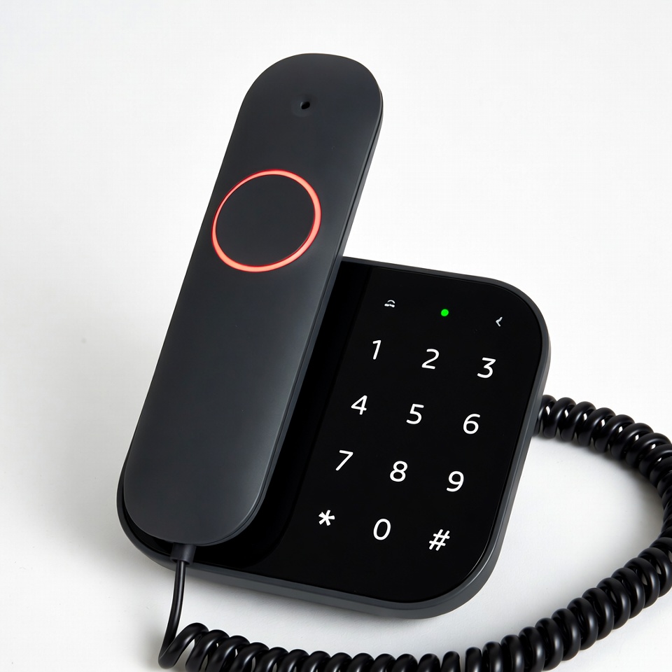 Black Corded Phone with Red Call Button