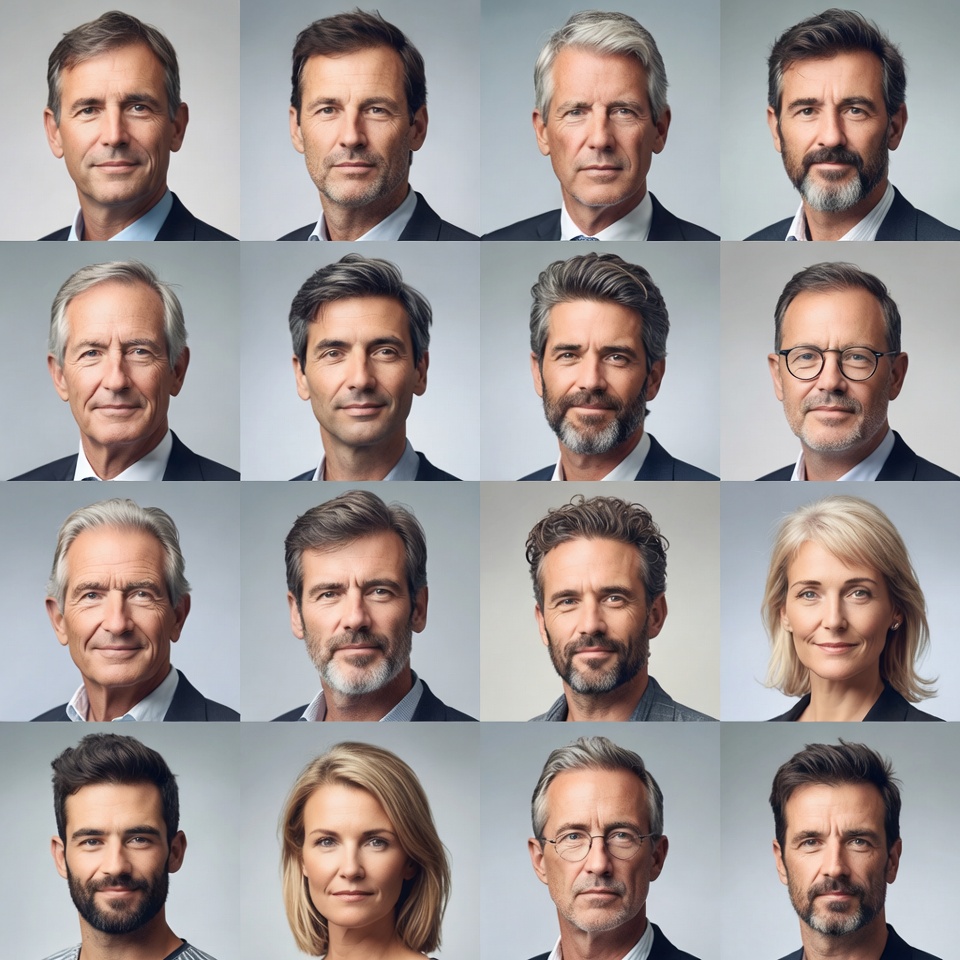 White, blonde women, business headshots, business people, corporate photos, executives, formal attire, gray background, gray hair, grid layout, men, middle-aged, portrait grid, professional portraits, serious faces, short hair, smiling men, suits, women, headshots